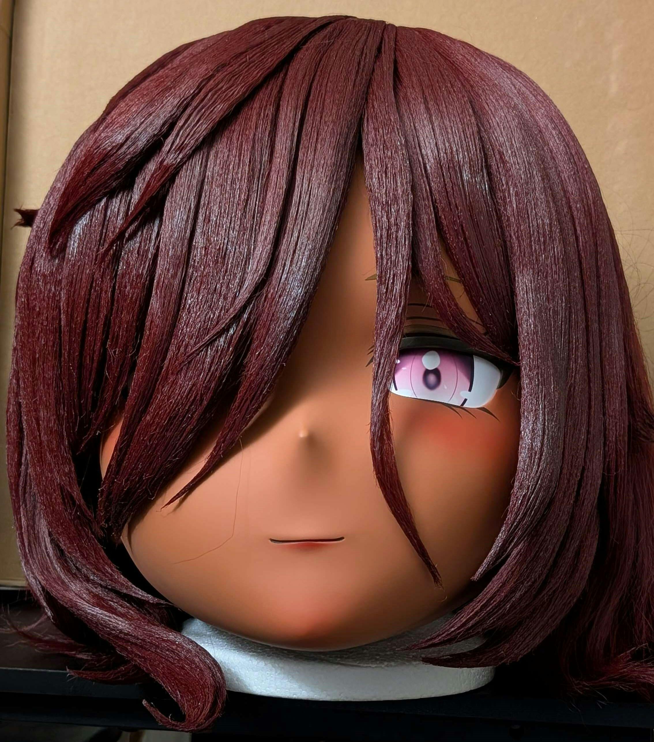 I am mostly satisfied with the mask you made. It looks very good, and the hair is quite well constructed, and also fairly portable considering its size. The mask and hair arrived in good condition thanks to the packaging, and I also appreciated the additional items you sent me - particularly the extra padding and velcro strips, which have made tinkering with my mask much easier.
